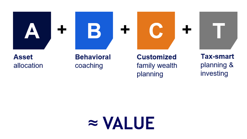 Our 2025 Value of an Advisor formula consists of four key elements in an advisor’s total value proposition: asset allocation to ensure the investor’s portfolio is designed to meet their financial goals while remaining aligned to their risk profile, their role as a behavioral coach to keep clients invested through thick and thin, customized wealth planning to guide their clients and families through the many stages of their financial life, and tax-smart planning and investing to help investors keep more of what they earn.