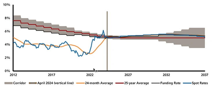 8 Technically, this method aligns with the Funding Target, except for the 25-year smoothing constraint. See Barry M. (2024). Three issues corporate plan sponsors should be aware of in 2024. Russell Investments Blog. Available at: https://russellinvestments.com/us/blog/plan-sponsors-2024-issues.