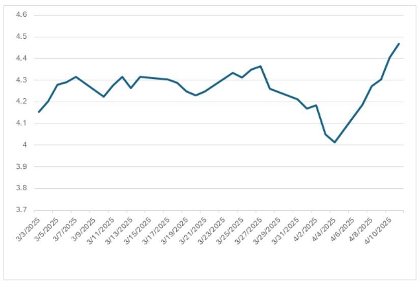 U.S. 10-year Treasury yields have risen sharply since the start of April