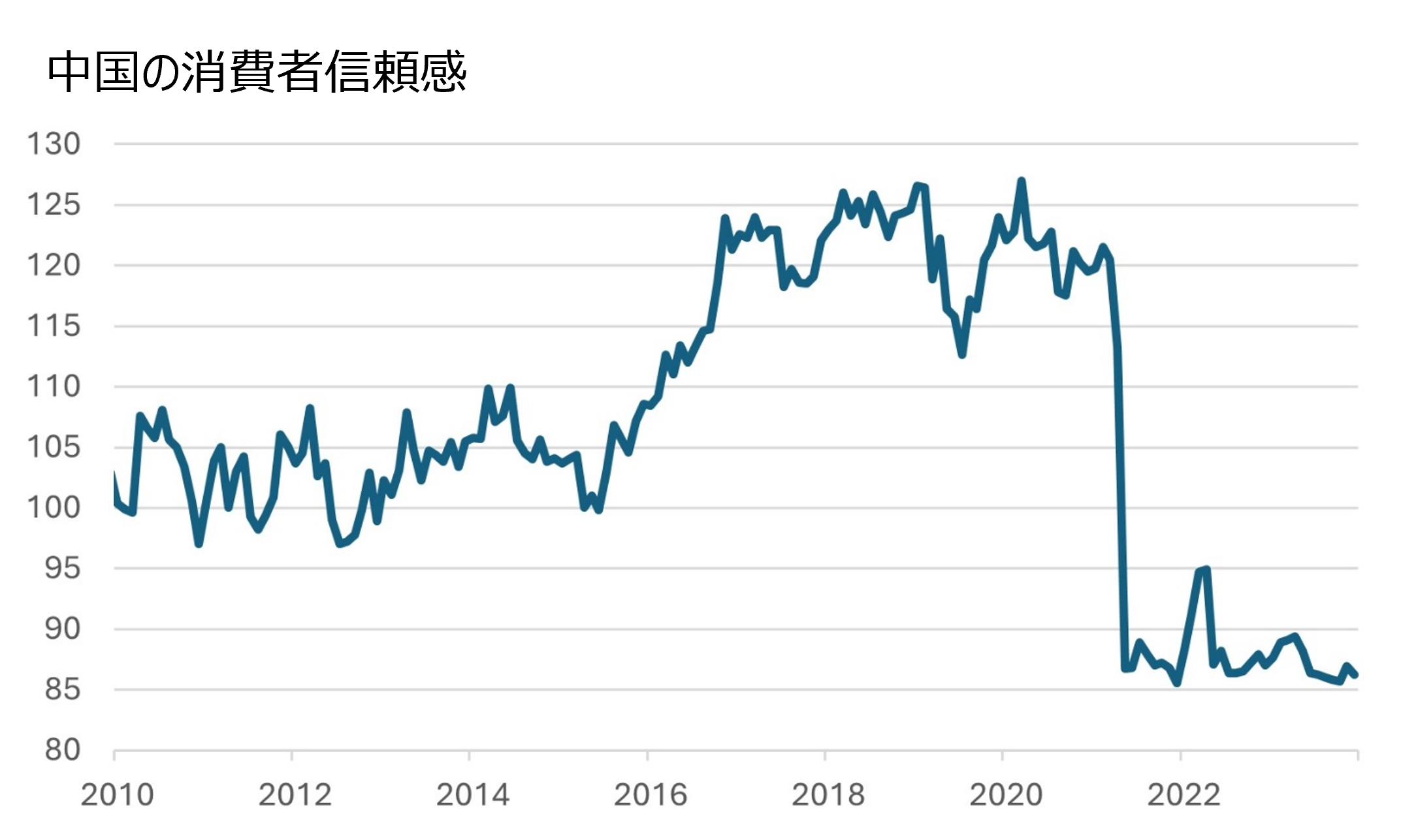 - 中国では、苦境にある不動産市場で改善らしき兆候が若干見られますが、消費者心理は依然として大きく低迷しています。