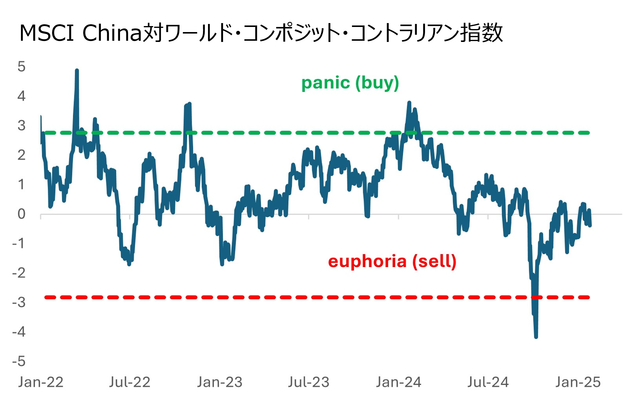 当社のセンチメント指標は、2024年後半には追加景気対策への期待から買われ過ぎとなりましたが、現在は非常にニュートラルとなっています。この点は、特に市場が地政学的および政策的な展開を消化していく中で、今年一年を通じて重要な注目材料となっていくでしょう。