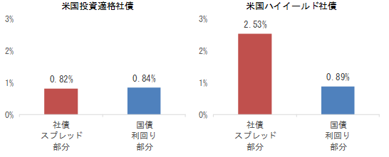 つまり、ハイイールド社債が強いクレジット資産の性質を持っているのに対して、投資適格社債はクレジット資産としての性質が相対的に弱く、安全資産(国債利回り部分)としての性質をより多く持っていることになります。