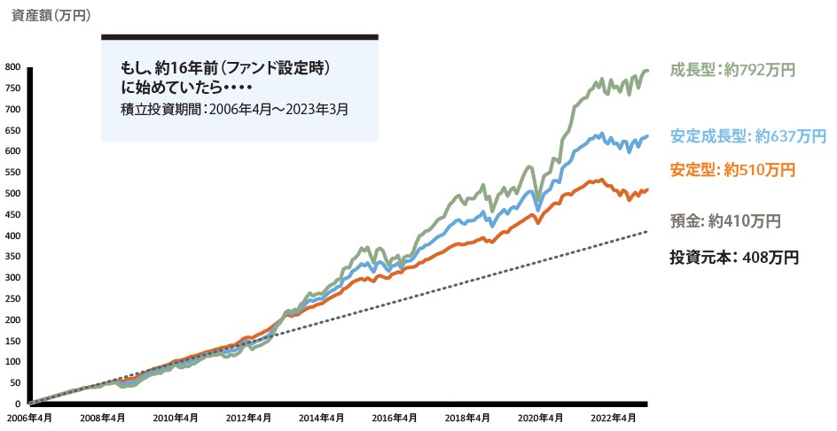 もし、約17年前(ファンド設定時)に投資を始めていたら・・・?