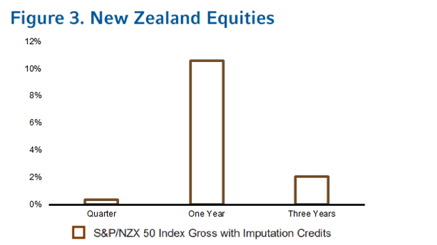 The New Zealand share market underperformed its global counterparts over the period; the local market returning 2.8%5 . Like its global peers, the New Zealand market benefited from improving trade relations between Washington and Beijing. Stocks also benefited from further domestic rate cuts, with the Reserve Bank of New Zealand (RBNZ) lowering the official cash rate twice over the period. The Bank cut by 0.25% at both its April and May meetings (the RBNZ didn’t meet in June), taking the official cash rate to 3.25%. The RBNZ has now cut interest rates by 2.25% since it began its easing cycle in August last year. In the Bank’s May posting-meeting statement, officials noted that the New Zealand economy is recovering after a period of contraction, with high commodity prices and lower interest rates supporting overall economic activity. The Bank added that inflation is within the 1-3% target band and officials remain well placed to respond to domestic and international developments to maintain price stability over the medium term. [Note: the RBNZ left the official cash rate on hold at 3.25% following its early July gathering.] The local market also benefited from stronger-than-expected growth in China – our largest trading partner – and some encouraging earnings results; though many companies who reported better-than-expected earnings did warn of uncertainty moving forward due to Trump’s tariff agenda.