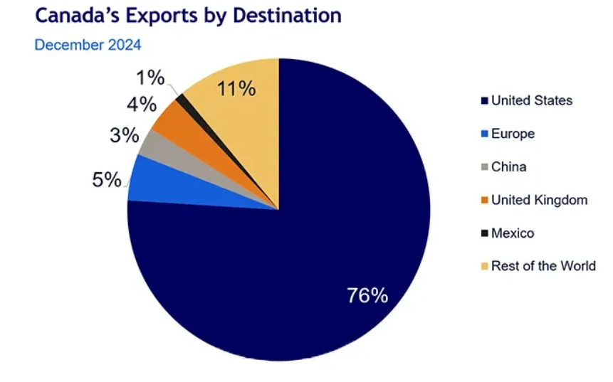 Although the U.S. has paused tariffs on imports from Canada and Mexico that comply with the Canada-United States-Mexico Agreement (CUSMA), there’s no guarantee this will last. While Prime Minister Carney has expressed a desire to diversify Canada's trading relationships, for now, roughly three-quarters of Canada’s exports are still to the United States. A protracted trade standoff with the U.S. could cause export volumes to drop and risk causing a Canadian recession.