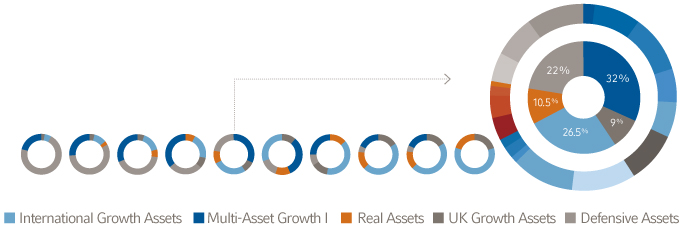 Ten risk-rated portfolios based on underlying building blocks with the added benefit of Russell Investments Multi Asset Growth Fund I.